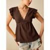 Spring and Summer Fashion Hollow-out V-neck Top with Ruffle Lace Short-sleeved Women’s T-shirts