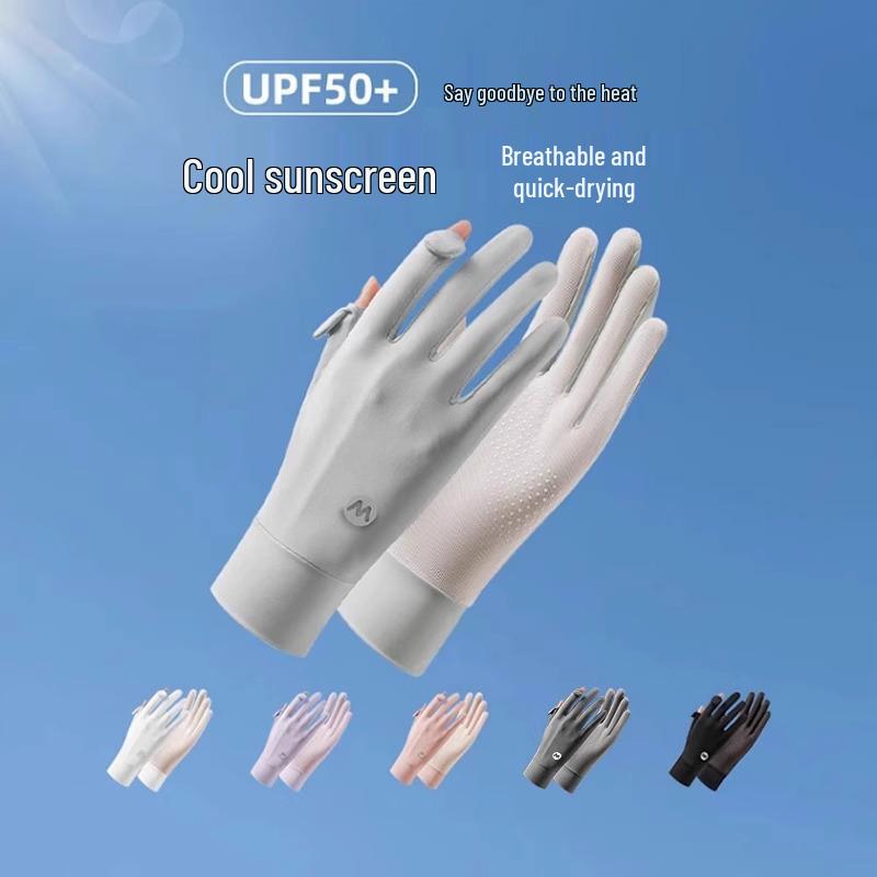 Women’s Ice Silk Sun Protection Gloves, Thin Anti-UV, Non-Slip for Driving & Cycling, Touch Screen Compatible.