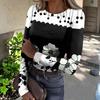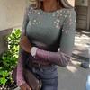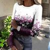 Women's Slim Bottom T-shirt Fashion Casual Gradient Printing Round Neck Pullover Long Sleeve Top