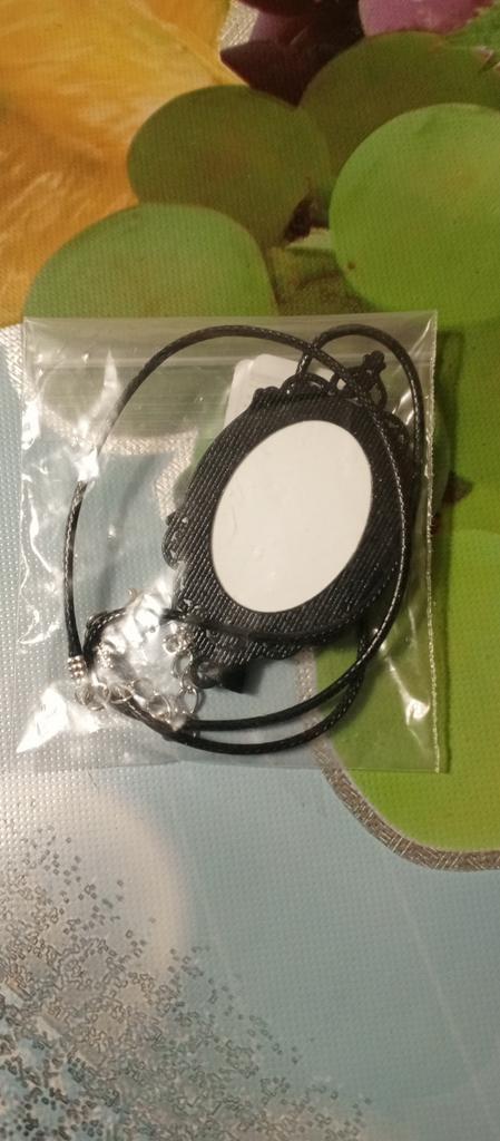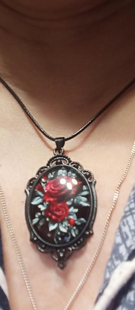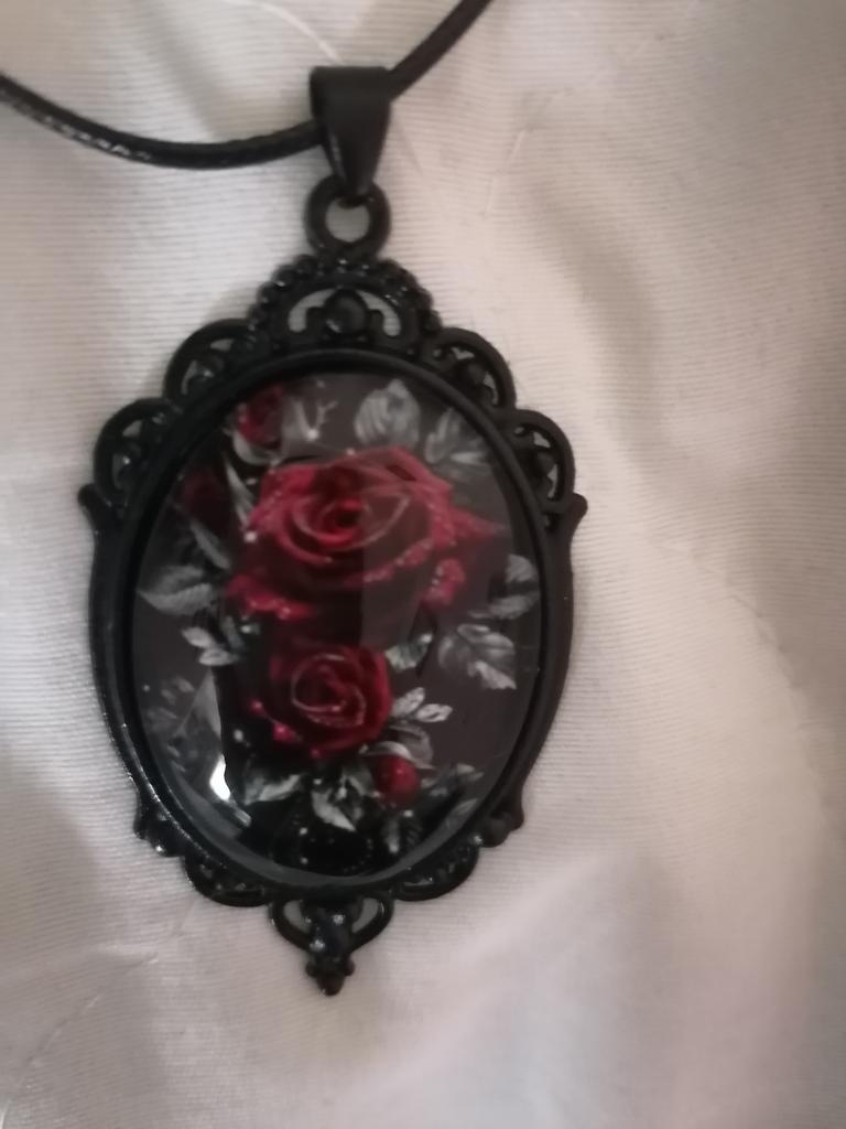Interesting pendant, it's glossy, not convex, but as if under glass on a leather cord