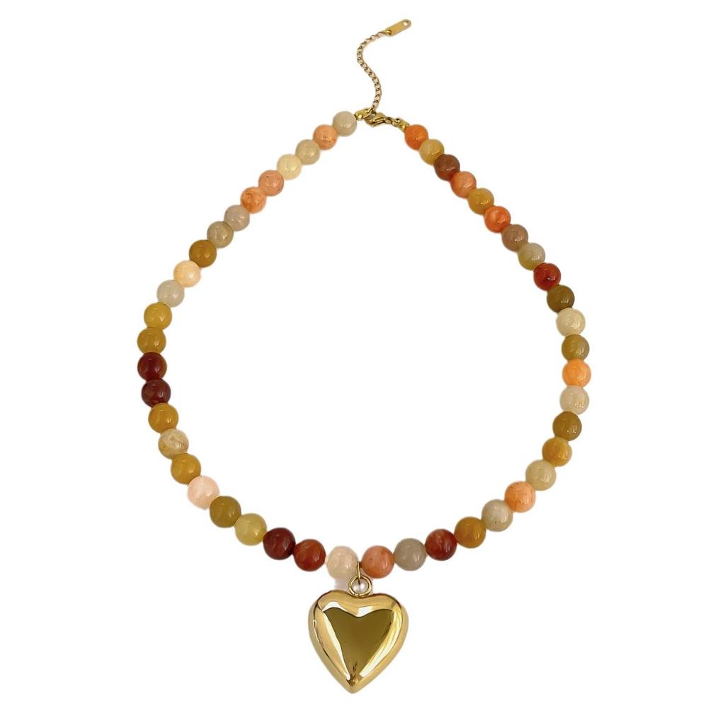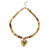 Bohemia Multicolor Stone Handmade Beaded Chain Gold Plated Heart Pendant Necklace for Women