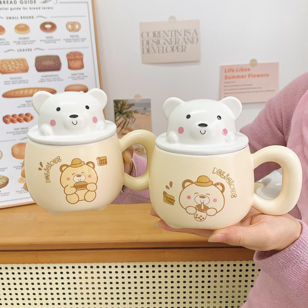 Mug with Lid Spoon Cute Little Bear Mug with Good Looks Girl with A Heart Drink Water Cup To Give Girls Birthday Gift