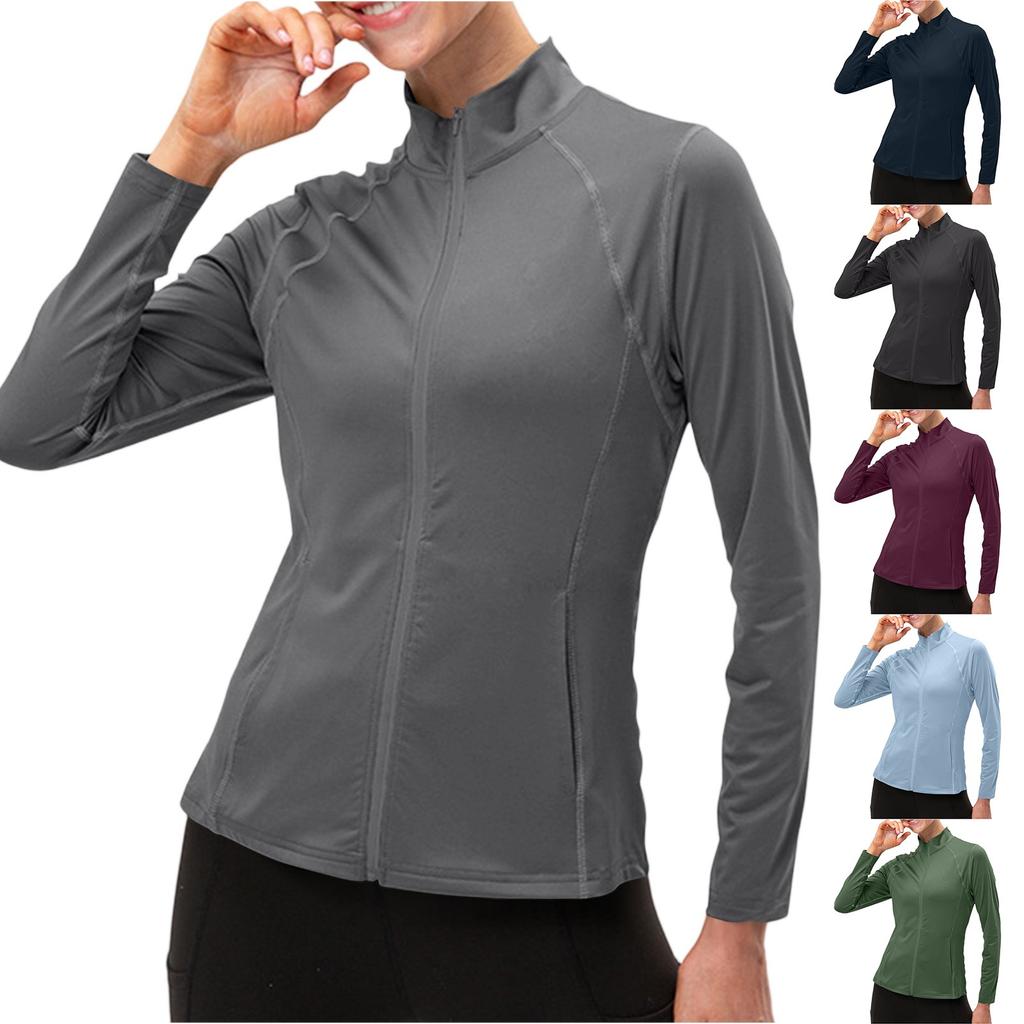Women's Casual Outerwear Full Zip Slim Fit Lightweight Sport Running Track Jacket With Pockets