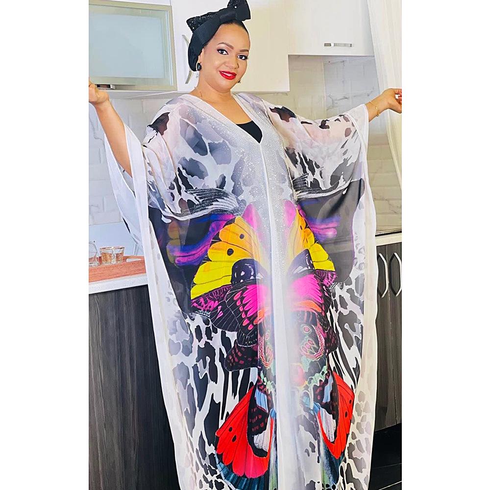 African Women's Plus Size Chiffon Print Beach Dress and Robe Set
