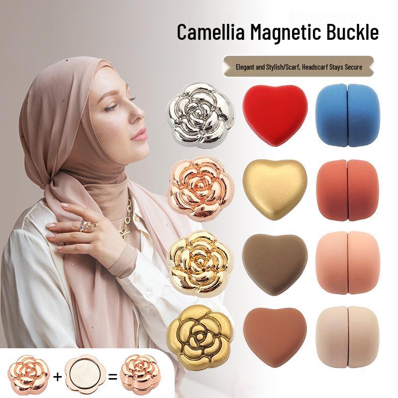Muslim Hijab Camellia Magnetic Brooch: Anti-Exposure, Fixes Securely