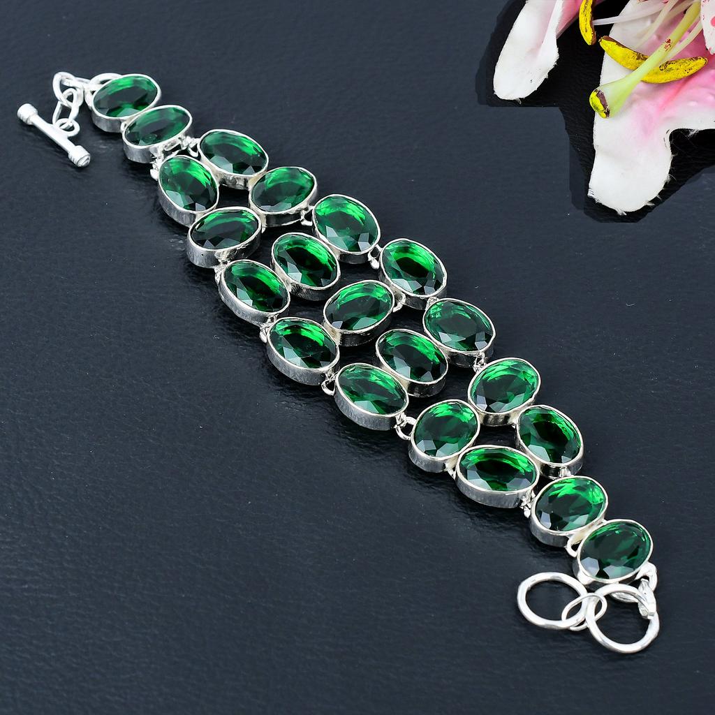 Chrome Diopside Gemstone Handmade 925 Sterling Silver Bracelet 7-8" KG-375