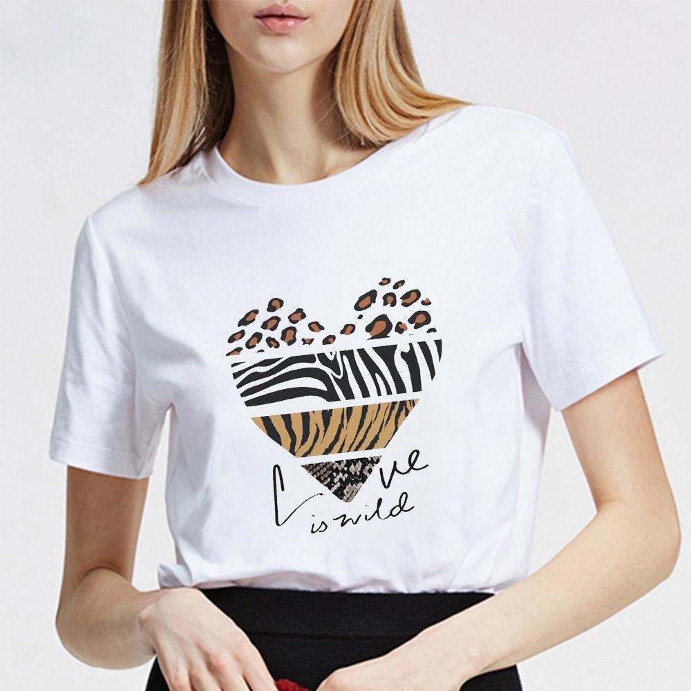 Leopard Love T Shirt Womens Kawaii Cartoon Print Summer O-Neck Female Tshirt Tops Graphic Funny Graphics Clothes Ladies Tshirt