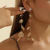 Metal Engraving Crow's Feet Imitation Pearl Chain Blowing In The Wind European and American Women's Earrings
