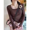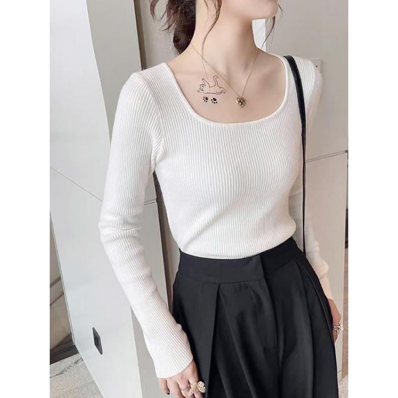 Fashion Women's Solid Square Collar Sweater Autumn Winter Long-sleeved Inner Top Slim Bottoming Knitted Sweaters Casual Pullover