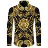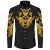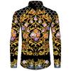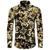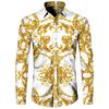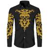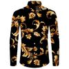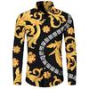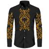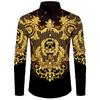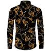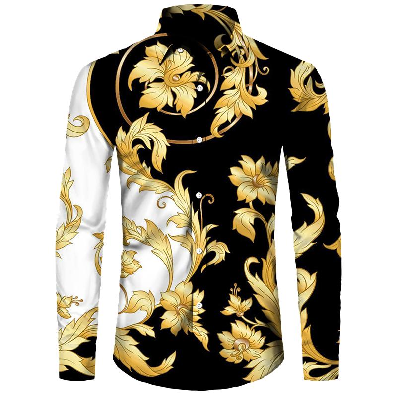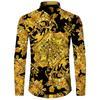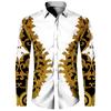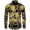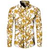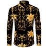 Golden Flower Pattern Print Men's Shirts Casual Single-Breasted Cardigan Long Sleeve Shirt Fashion Trend Tops Men Clothing