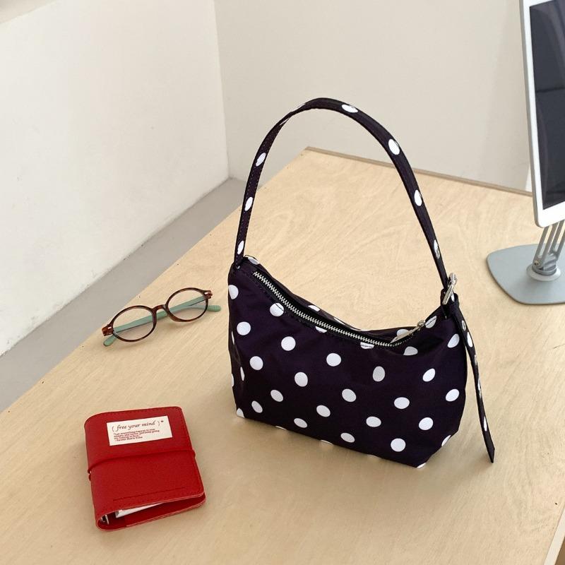 Commuter Shoulder Bag Women's New Niche Simple Full Print Black and White Polka Dots Rectangular Versatile Nylon Small Bag
