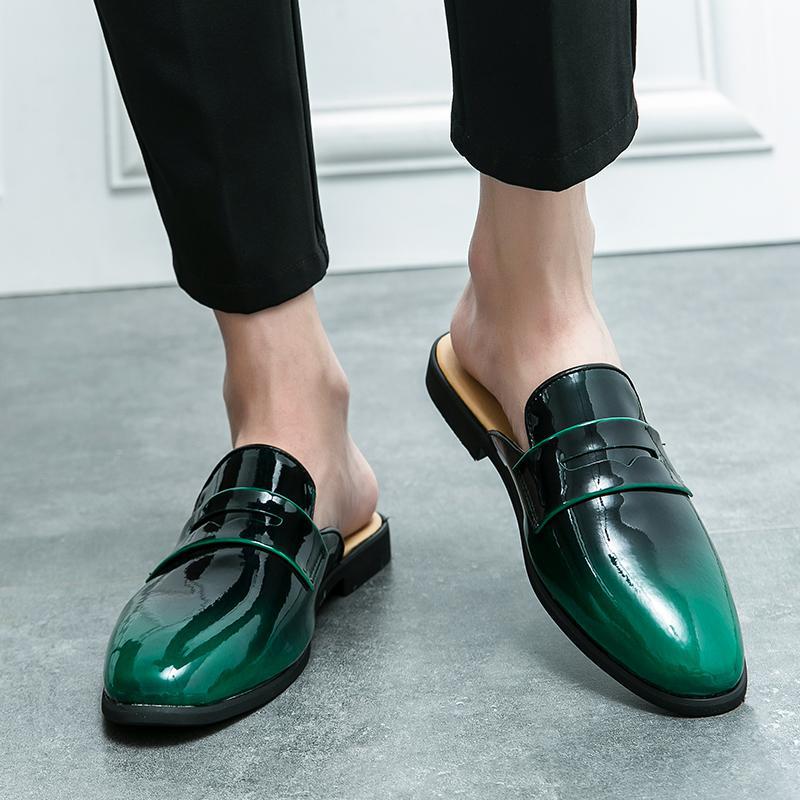 Summer Glossy Half-drag Leather Shoes Men's Doudou Shoes Muller Shoes 38-44 Leathershoes