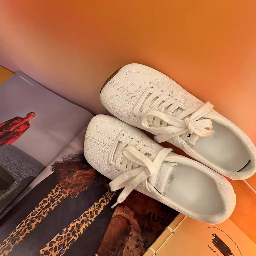 Retro Square Head Lychee Pattern Flat Bottom German Training Shoes Women's 2025 New Fashion Versatile, Comfortable and Light Casual Forrest Gump Shoes