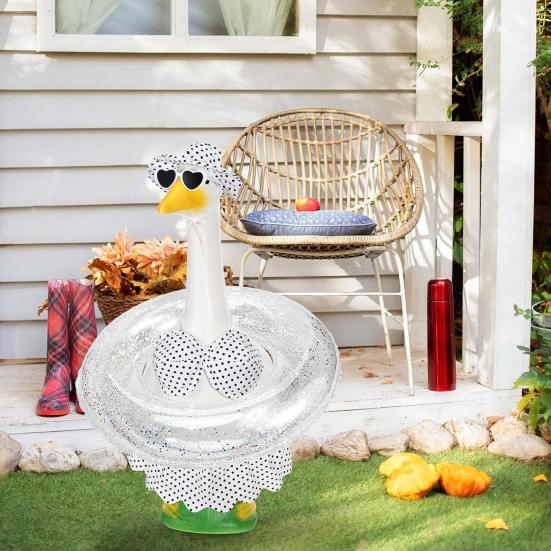 Yousheng 1 Set Porch Goose Outfits Outdoor Garden Lawn Yard Goose Statue Striped Shirt Red Hat Hawaii Bikini Swim Ring Holiday Party Dress-up Clothing