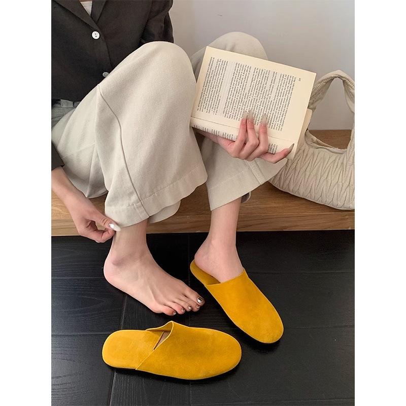 French Retro Lazy Style Bag Head Half Slippers Women's Outer Wear 2025 Comfortable and Versatile Flat-bottomed Casual Cool Slippers