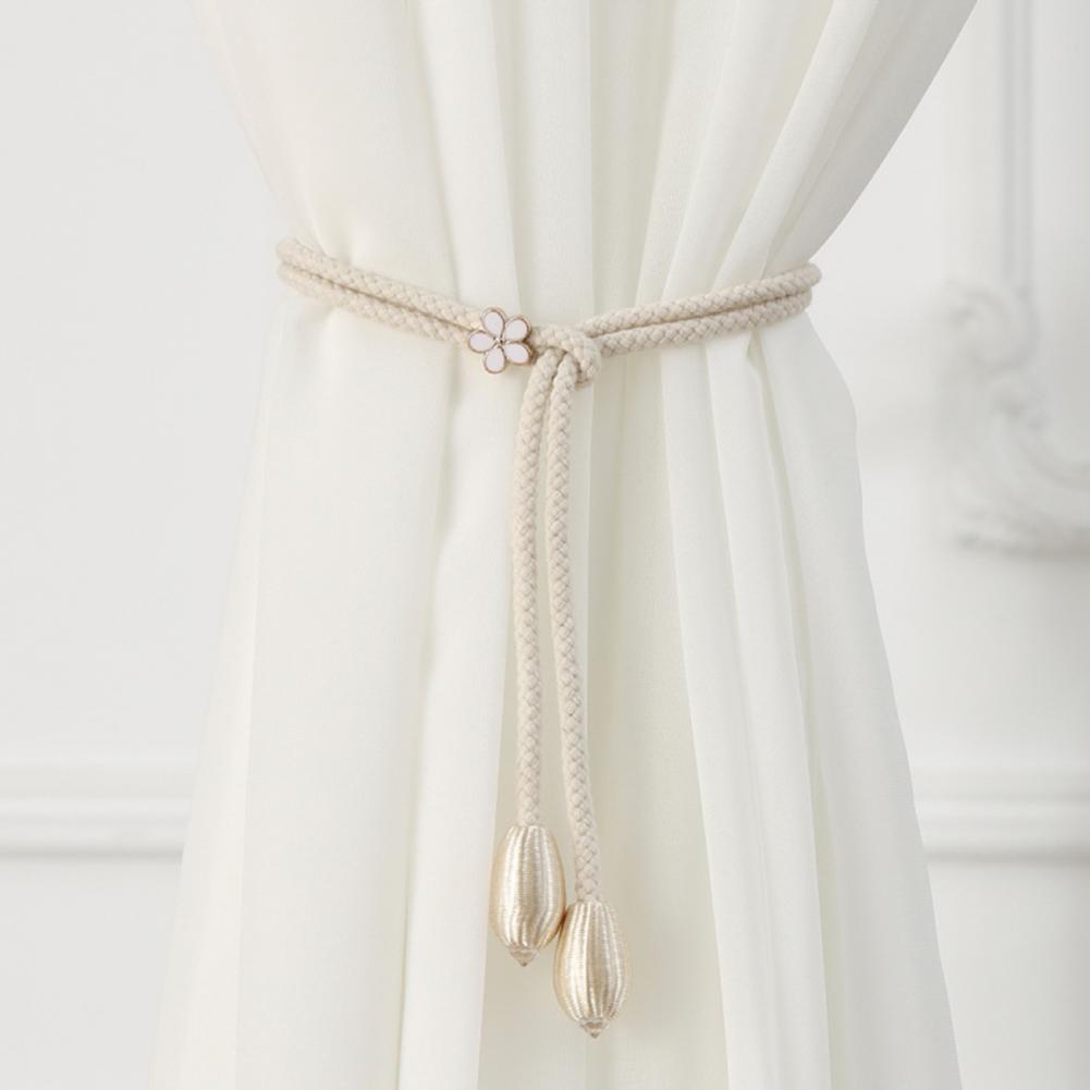 2Pcs Boho Style Curtain Straps Handmade Natural Cotton Linen Curtain Ties Decorative Curtain Rack Balcony Towel Holder