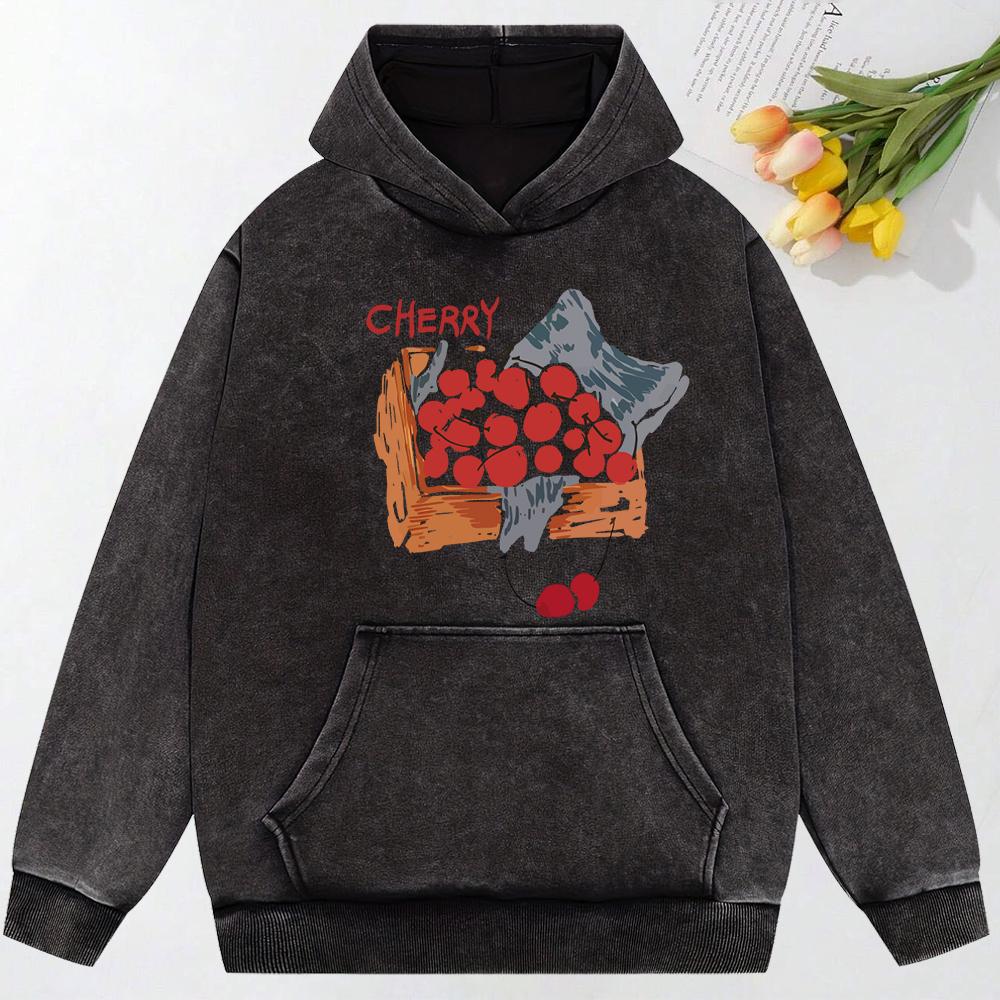 A Basket Of Cherries Printing Washed Clothing Fashion Loose Hoodie Cotton Autumn Hoody Simplicity Fashion