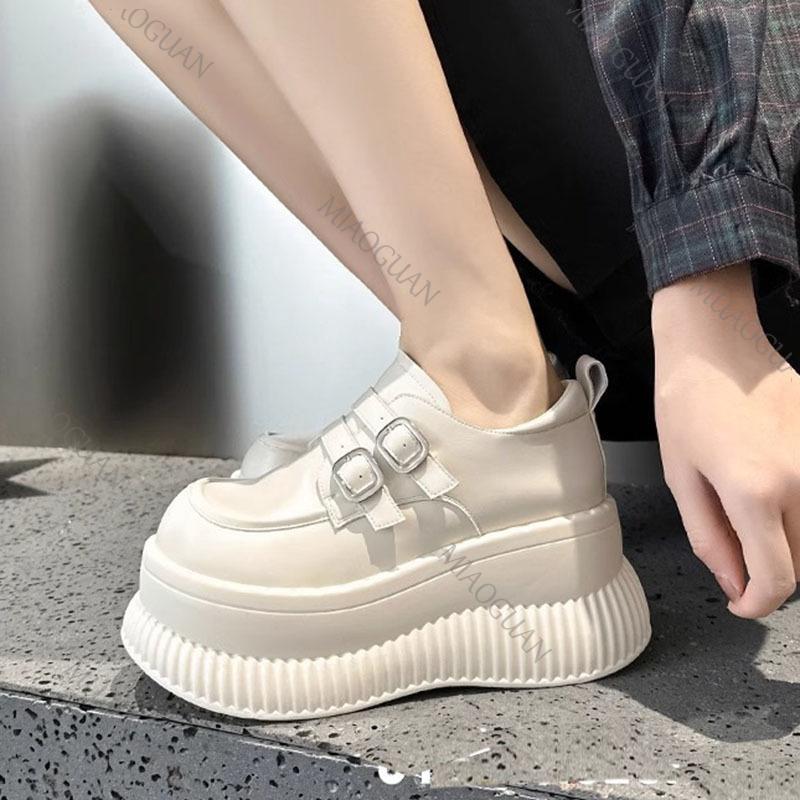 Women's Platform Shoes British Style Spring New Thick Bottom Women Sneakers Casual High Heels Height Increase Mary Jane Loafers