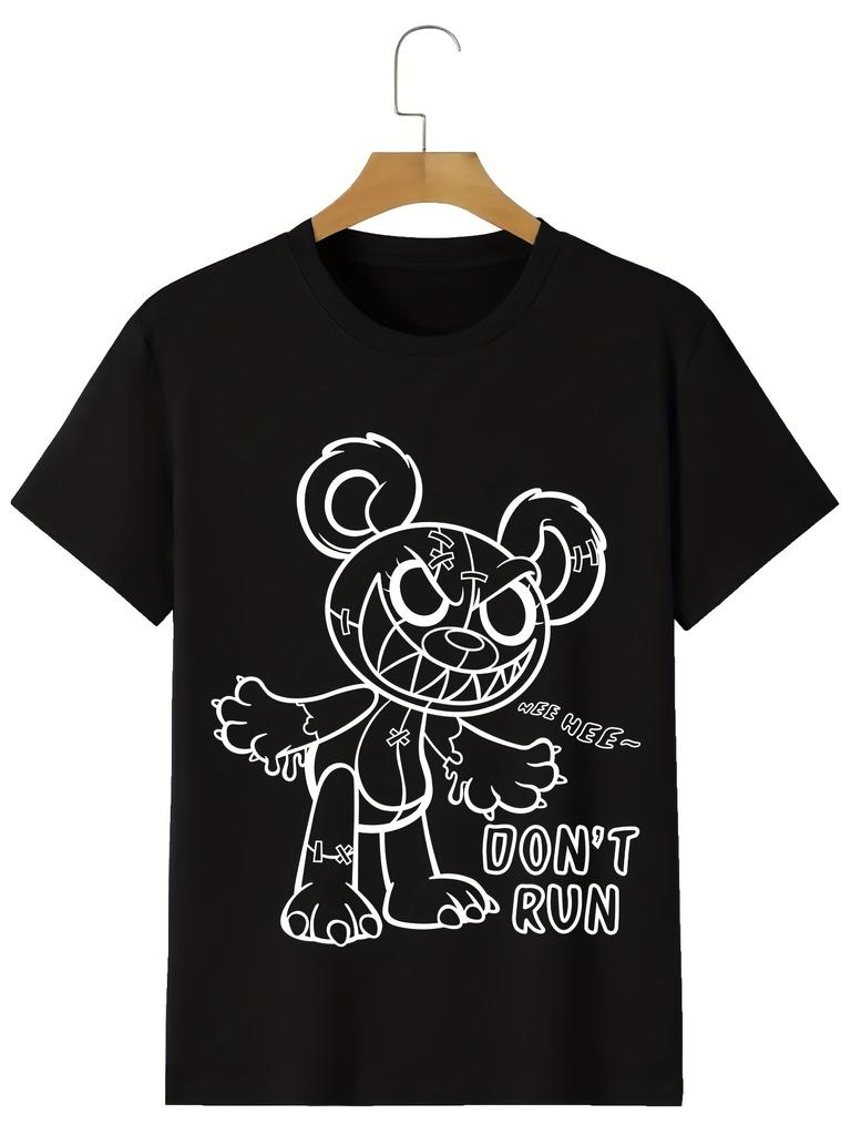 Men's Casual "Don't Run" Bear Print Crew Neck Short Sleeves T-Shirts For Summer