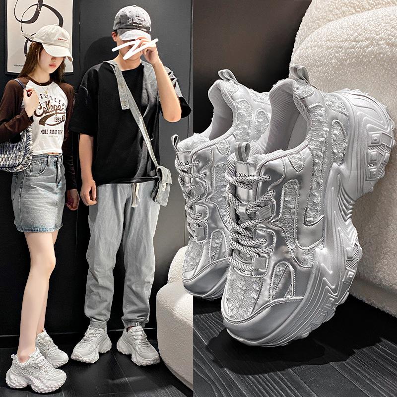 Couples' Dad Shoes Women's Platform Thick-soled Lace-up Casual Shoes for Commuting To Work Comfortable Shoes