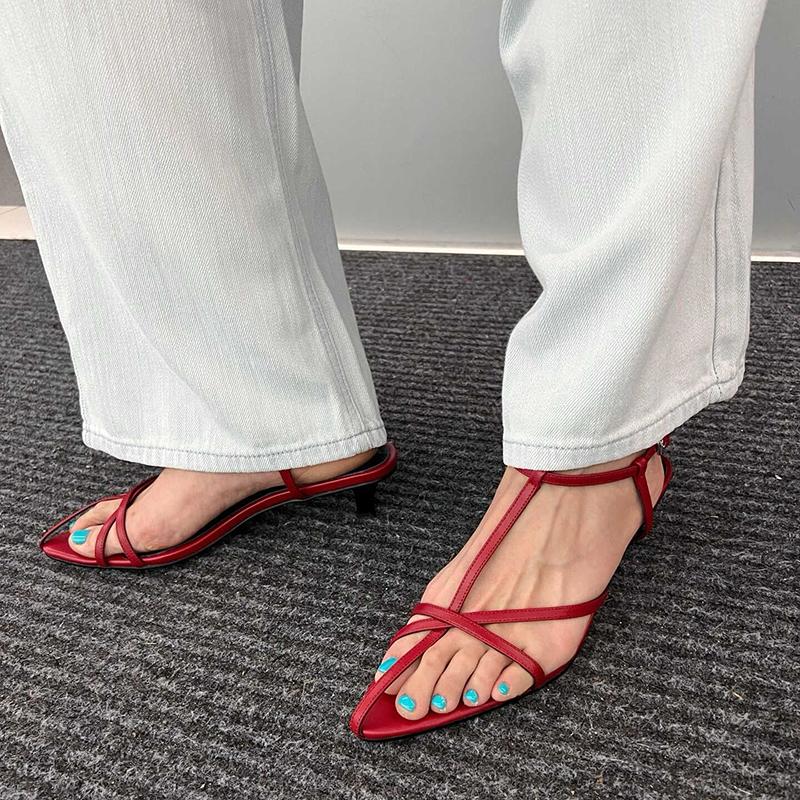 2025 Summer Low Heels Narrow Band Women Sandals Open Toe Party Dress Sandalias Casual Dress Street Style Shoes
