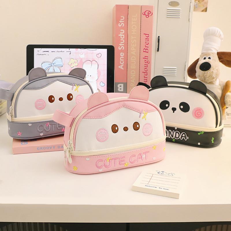 Kawaii Cartoon Panda Pencil Case Pu Leather Super Capacity Pencil Box Student Stationery Storage Bags Cute Makeup Bags Gifts