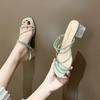 2025 Summer Women's French Rhinestone Mid-Heel Slide Sandals Fairy Elegance Versatile for Daily & Date Dress Outfits.