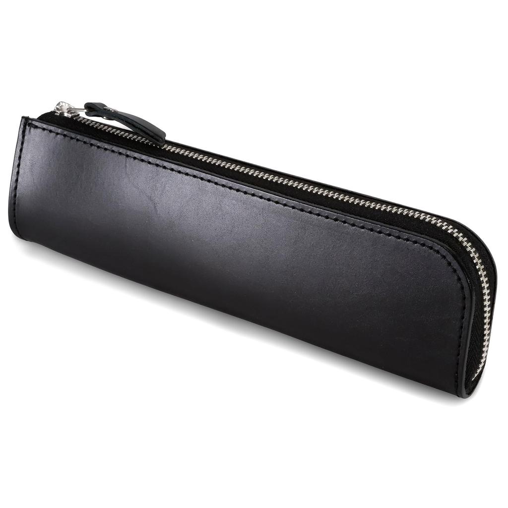 Rioboca Tanned Leather Pencil Case Made In Japan Himeji Leather Simple Adult Zipper (Black)