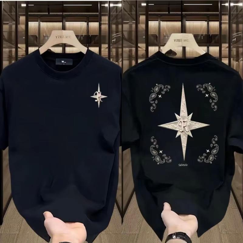 Luxury High-quality Fashion Loose Cotton Brand Short-sleeved Men's Crew Neck T-shirt 2025 Summer New Street Trendy Brand Unisex