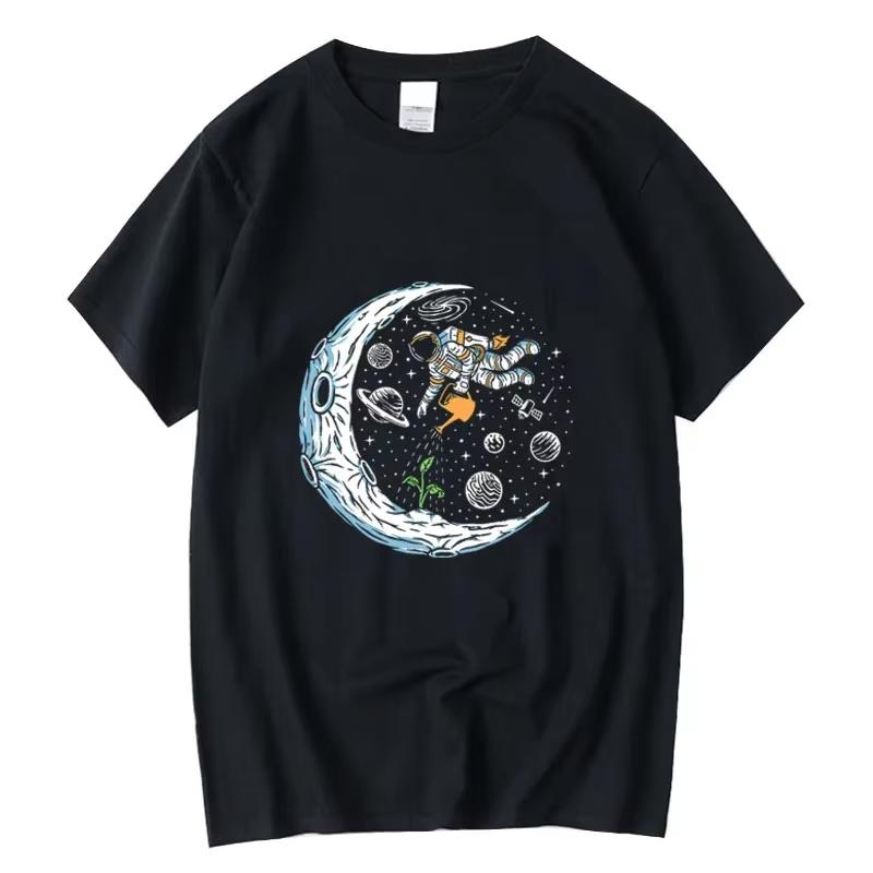 Summer Men's T-shirt 100% Cotton Casual Funny Astronaut Design Print Loose O-neck T Shirt for Men Short Sleeve T-shirt Male Tops