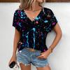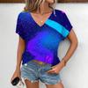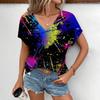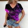 Summer V-neck 3D Color Splashed Ink Printed Top Fashionable Casual Short Sleeved Women's T-shirts