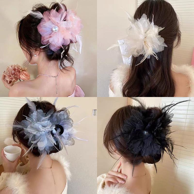 Ostrich Feather Claw Clip: Elegant Updo Accessory for Volume & Style