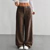 Corduroy-Textured Women's High-Waisted Wide-Leg Pants | Relaxed Fit, Side Pockets & All-Season Comfort, Machine Washable Beige Trousers