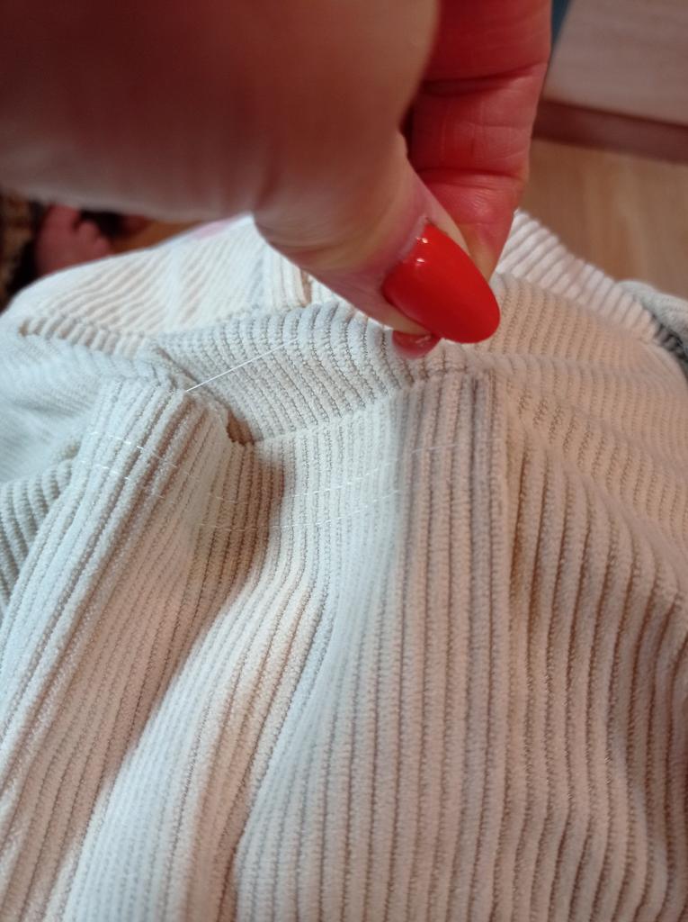 I didn't like the trousers because the fabric is thin corduroy, doesn't hold its shape at all, the side seams don't hold the flare shape, they look shapeless. I also didn't like that there was only a tacking stitch on the seat seam and the side seams of the legs, and no machine stitching. Threads are sticking out of the pockets, both front and back. I do not recommend.