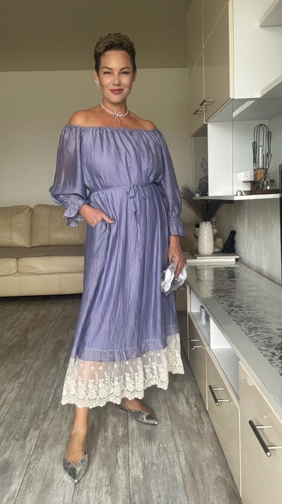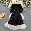 Sweet Women's Dress Slash Neck Long Lantern Sleeves Bandage Gathered Waist Spliced Lace Loose A-line Dresses