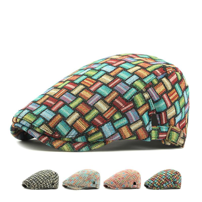 Spring Autumn Hat Women's Retro Plaid Beret Color Block British Peaked Cap