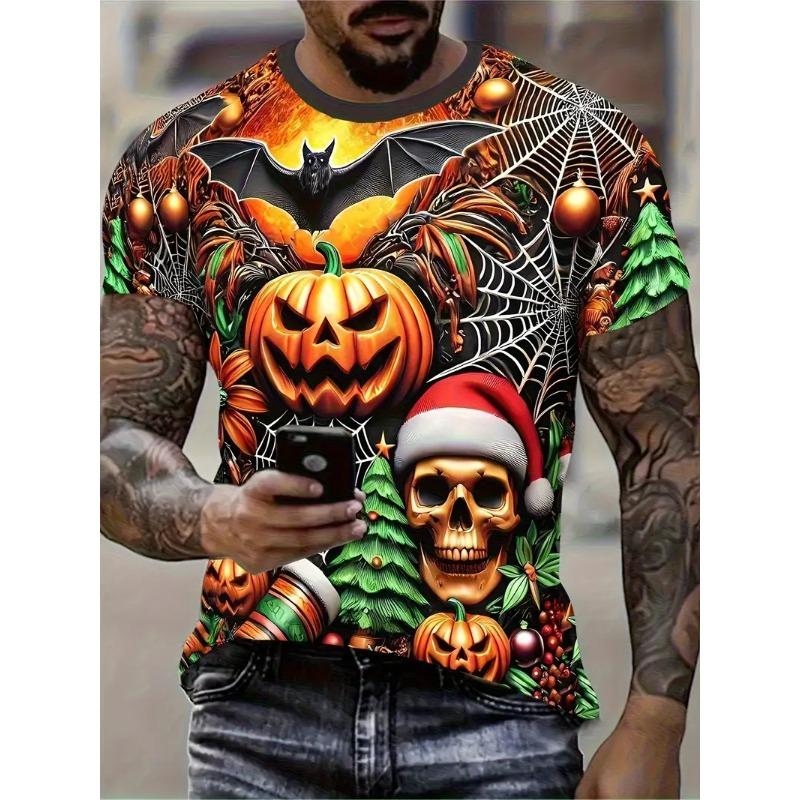 Men's Halloween Pattern Printed T-shirt Sports Short Sleeved Crew Neck T-shirt for Summer Outdoor Fitness Workout Men's Clothing
