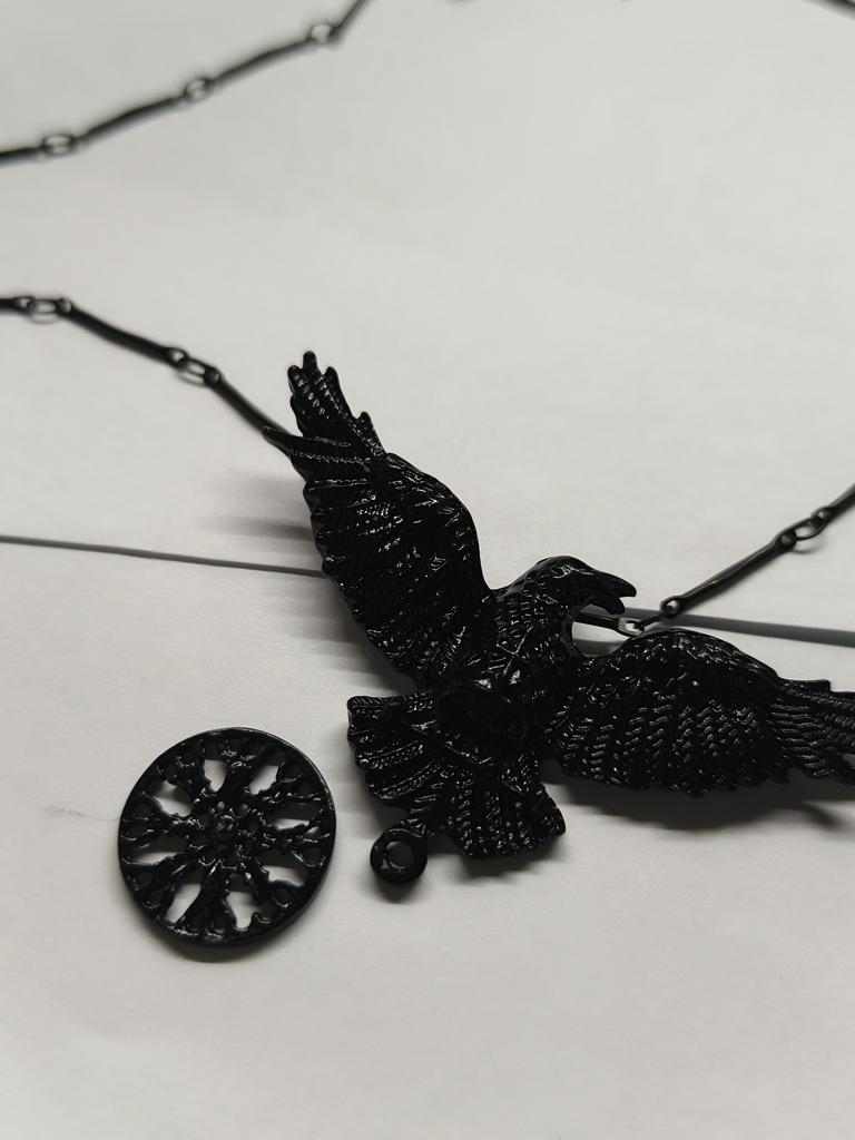 Vintage Gothic Black Crow Pendant Women's Necklace Dark Viking Mystery Symbol Necklace