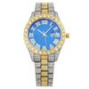 Men's Hip Hop Trendy Fashion Large Dial Diamond Cuban Chain Watch Set
