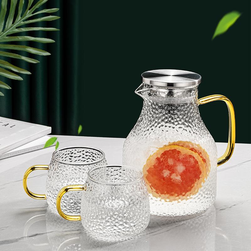 Glass Pot with Handle Hammer Pattern Household Large Capacity High Borosilicate Glass Cold Water Kettle Stainless Steel Lid Cold Water Kettle