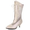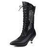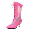 Pink Mid-calf Boots Women Low Heels Ladies Mesh Black 2025 New Summer Shoes Lace-up Long Party Dance Boots Breathable Spring