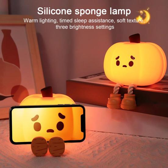 Safety is paramount with this night light, as it is made from soft silicone lampshade and ABS lamp holder materials, ensuring children's well-being. This versatile light serves as both a bedside lamp and stress-relief toy for all ages. A perfect Halloween gift, this cute pumpkin night light brings joy and relaxation to babies, kids, friends, and yourself.