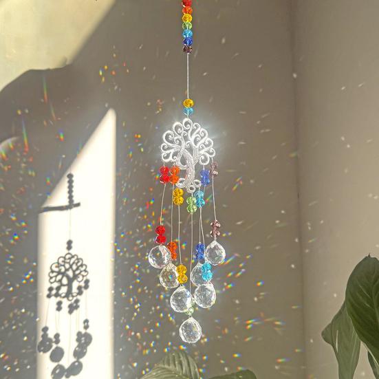 Elevate your decor with our intricately designed fake crystal wind chime pendant featuring a tree-shaped accent. Each element is meticulously crafted to add a touch of elegance and symbolism to your living space or serve as a thoughtful gift for loved ones.