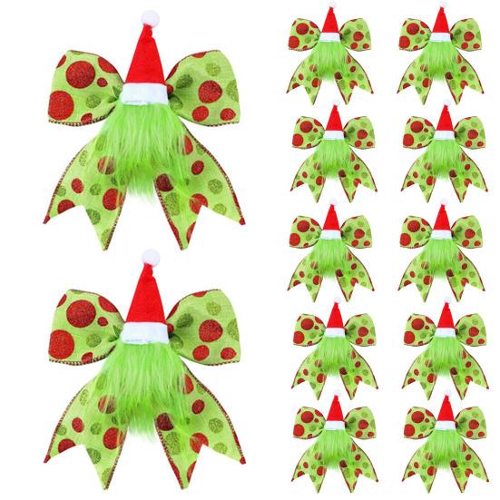 Rich Decorative Set: 12 pieces of green-haired elf bows and polka dot bows included, offering a mix-and-match option to create a fuller and more fun-filled Christmas tree decoration.