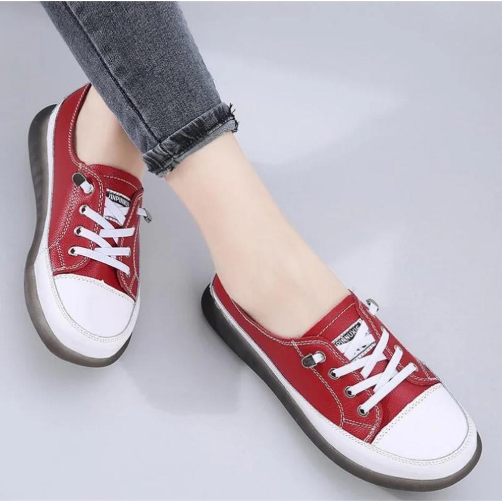 Women Spring Sneakers 2024 New Genuine Leather Trend Color Matching Women Shoes Flat Lace-up Casual Girl Student Shoes