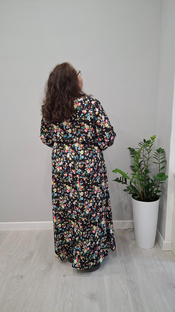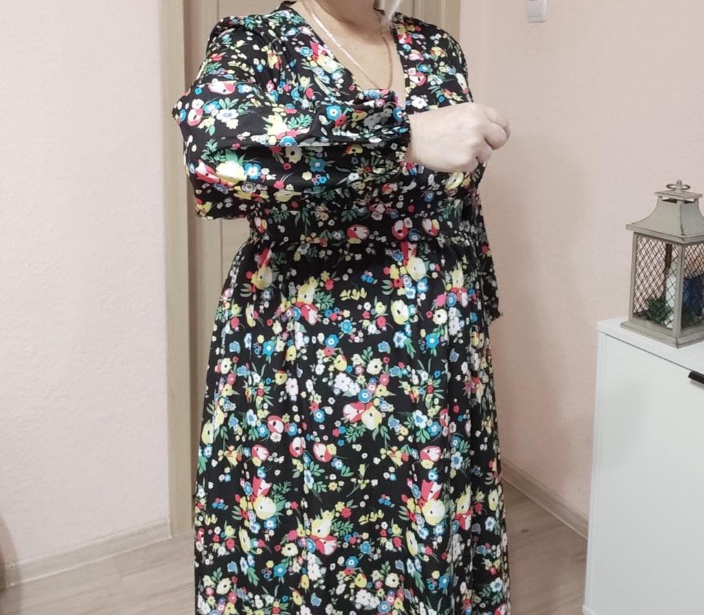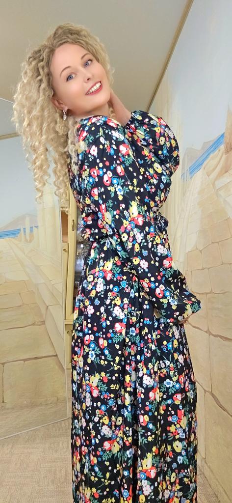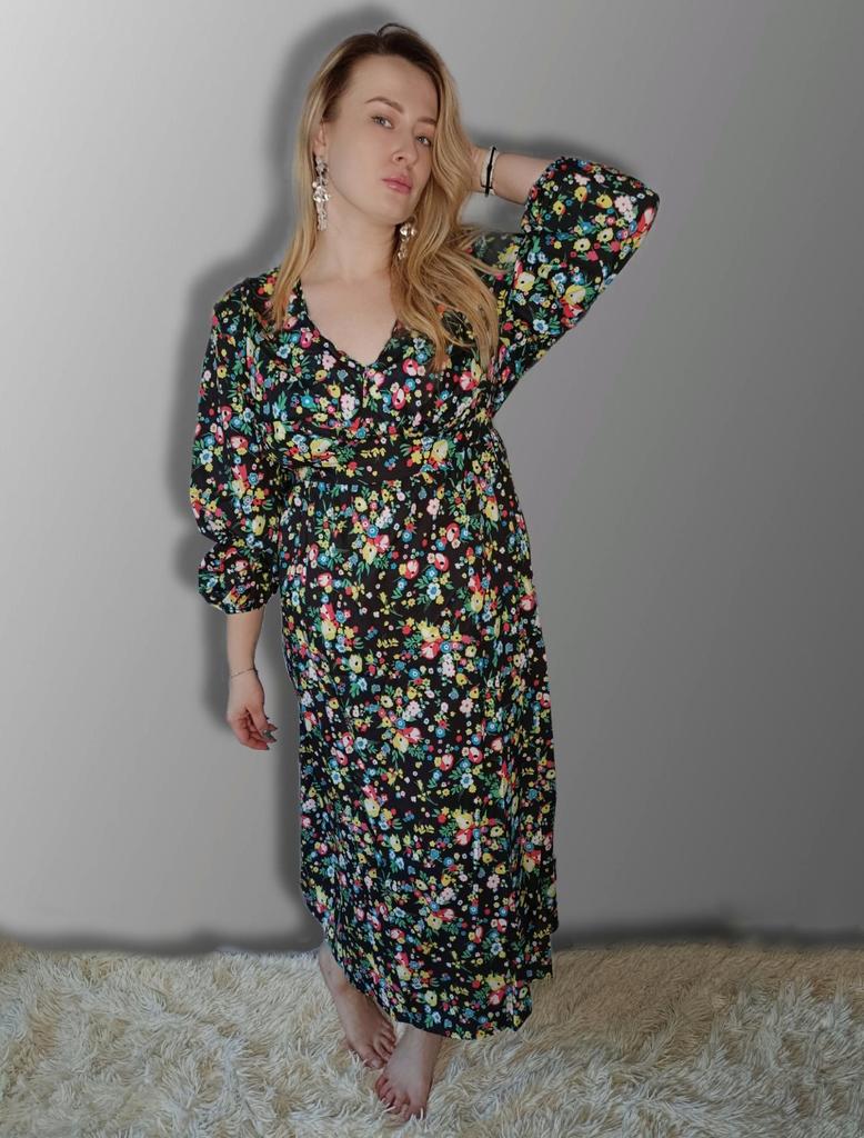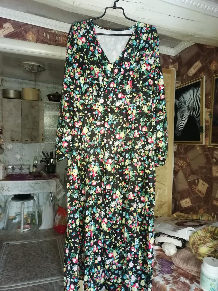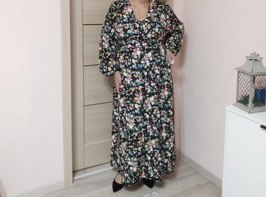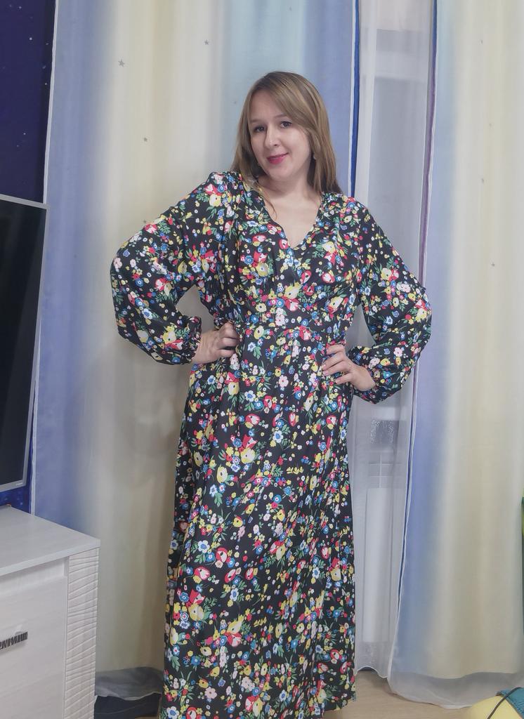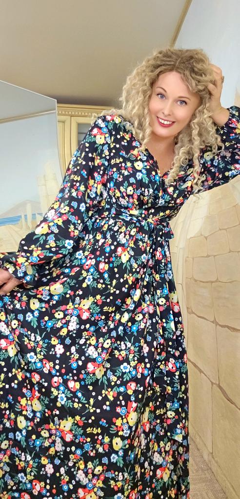 Super cool maxi dress with lovely flower pattern.It comes in 1 colour and few plus sizes.i am wearing xl on 103cm chest and 80cm waist,it fits perfectly,slightly big but with the belts it looks ok.The dress has long puffed sleeves,v-neck,great quality.Delivery took 3 weeks to Ireland.Happy Shopping!
