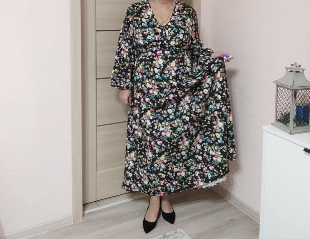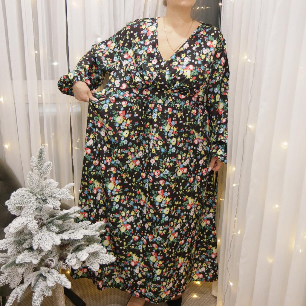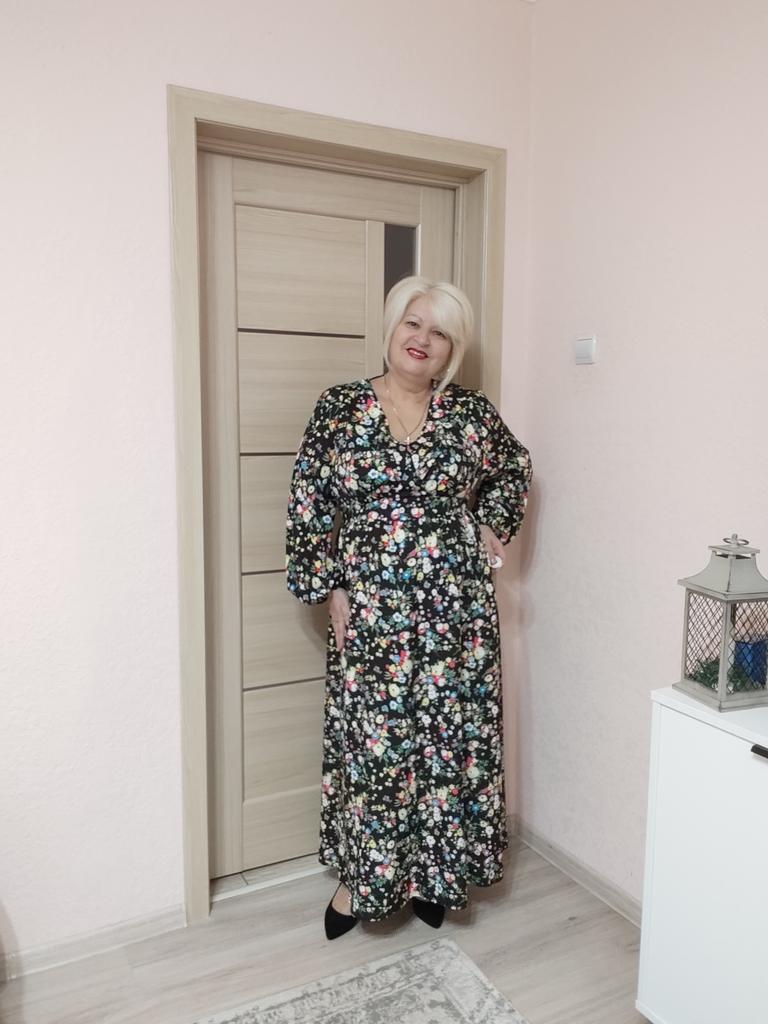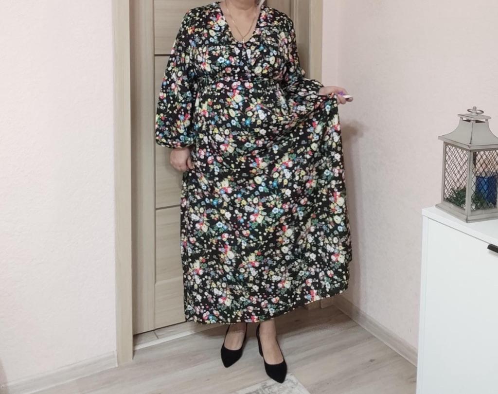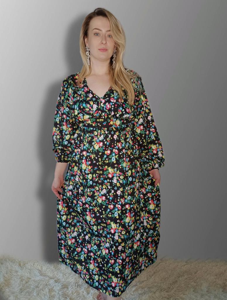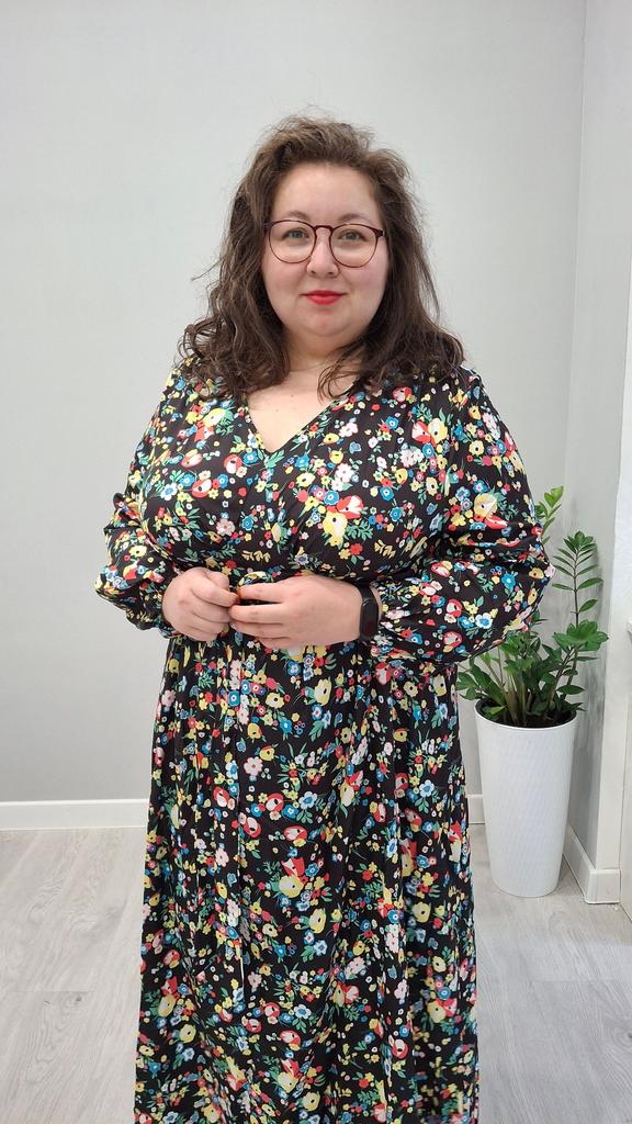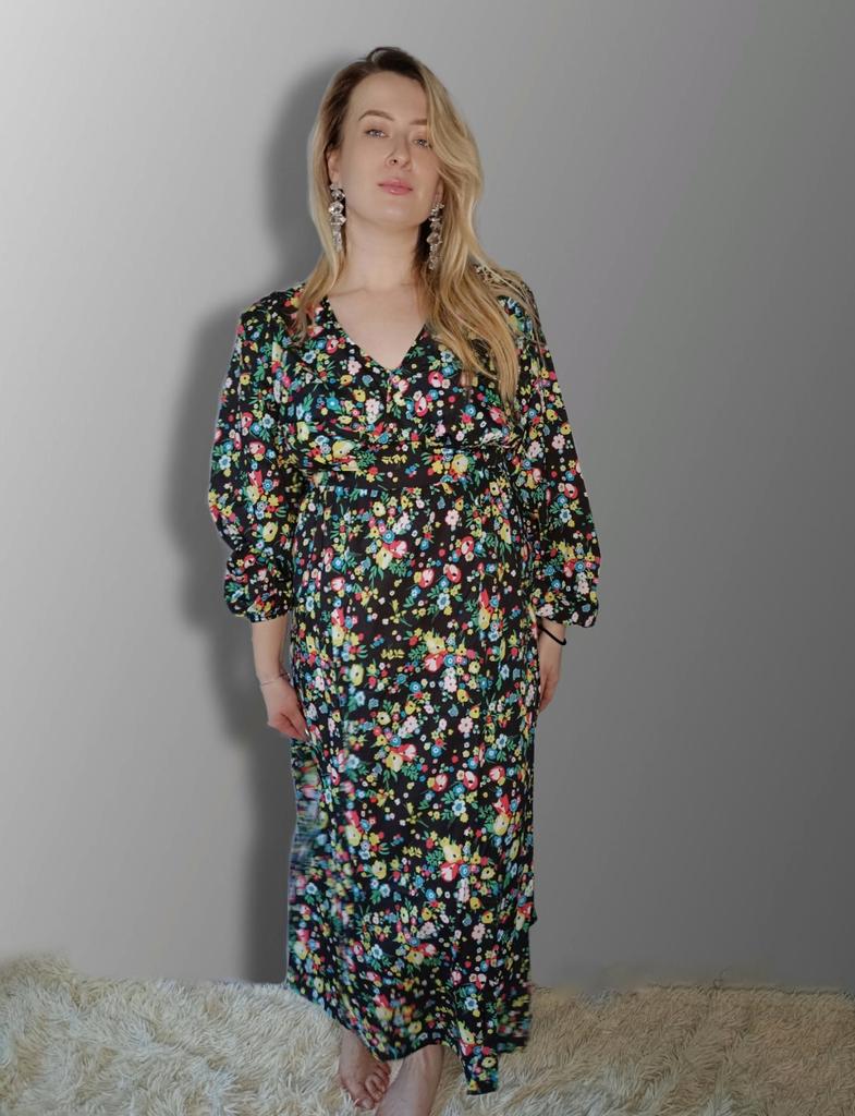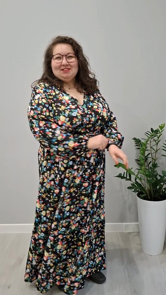 Super cool maxi dress with lovely flower pattern.It comes in 1 colour and few plus sizes.i am wearing xl on 103cm chest and 80cm waist,it fits perfectly,slightly big but with the belts it looks ok.The dress has long puffed sleeves,v-neck,great quality.Delivery took 3 weeks to Ireland.Happy Shopping!