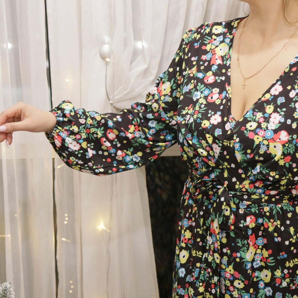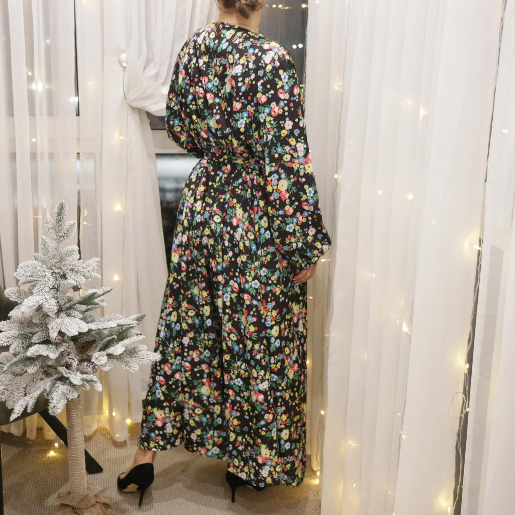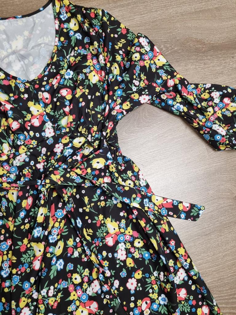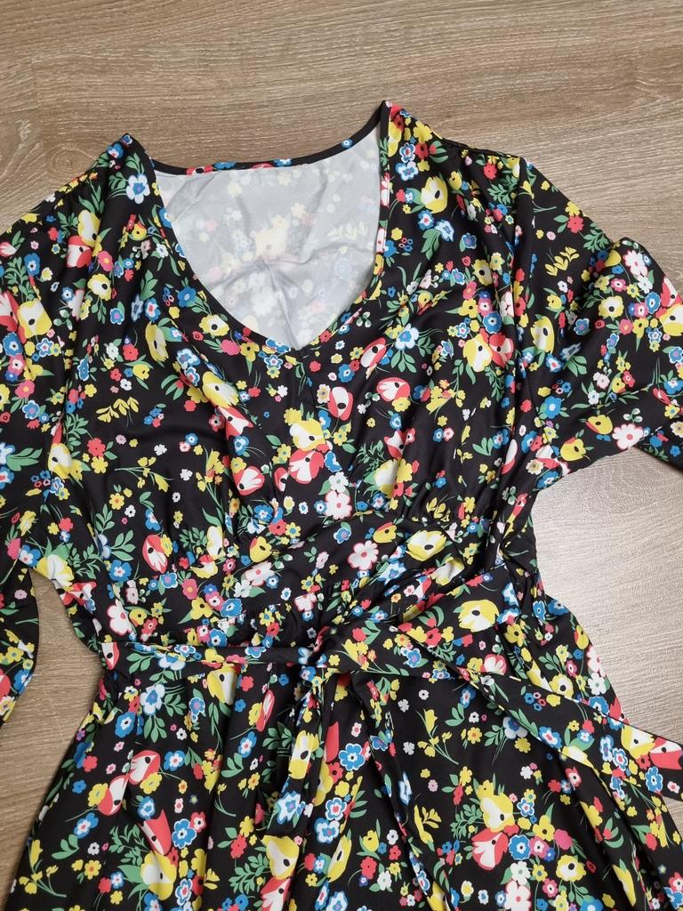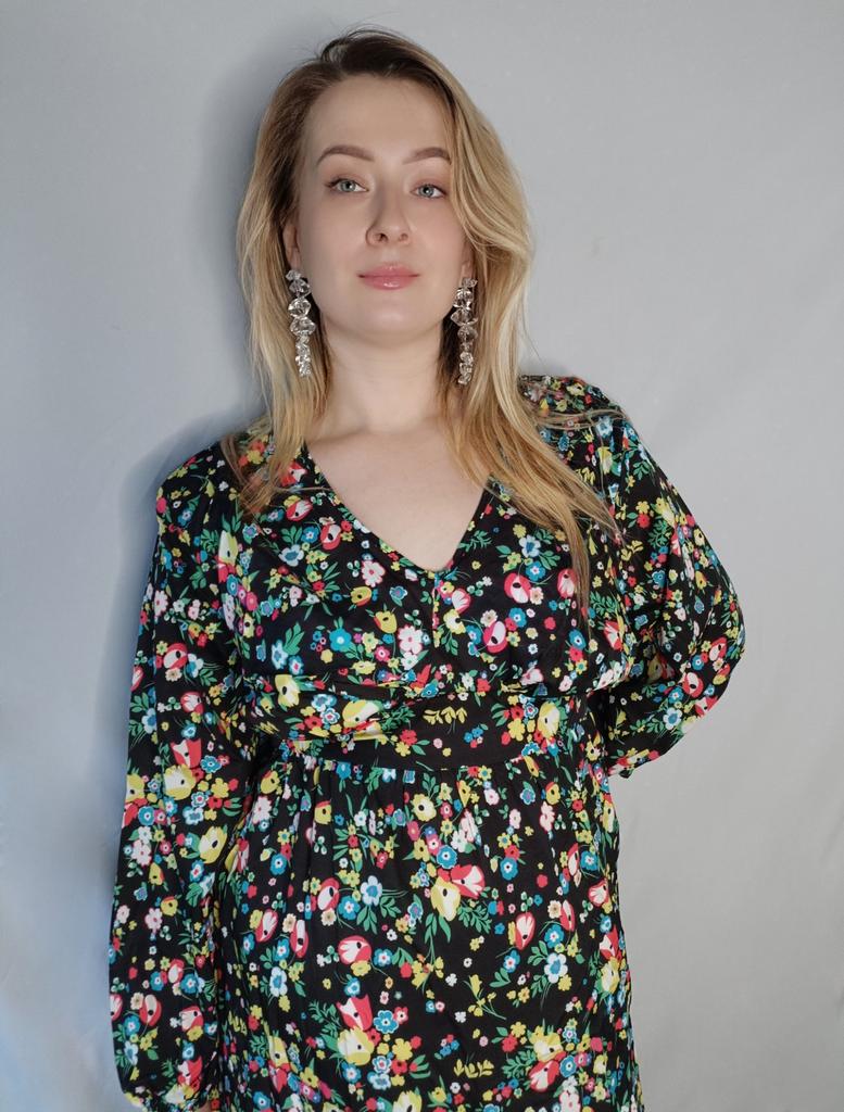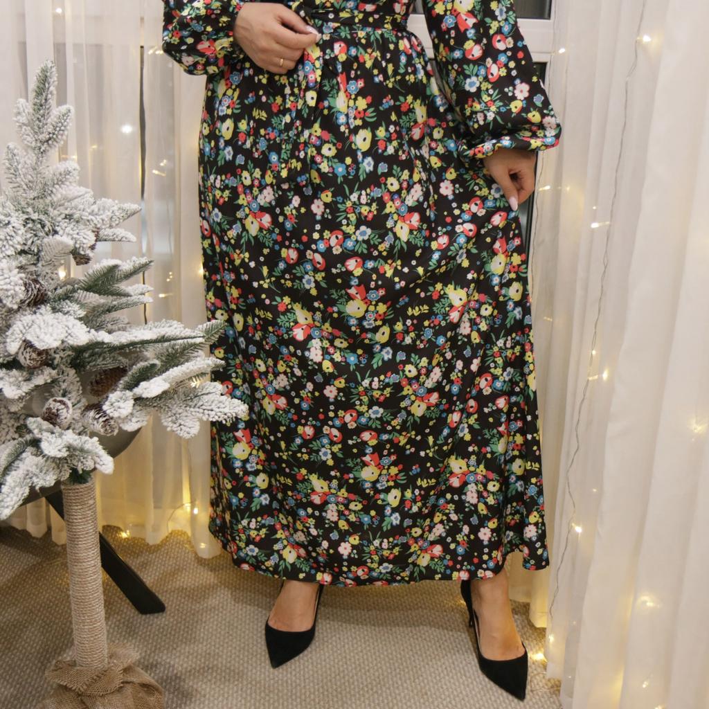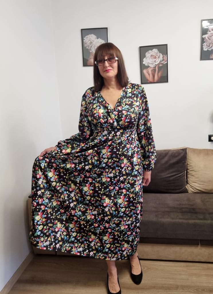 Super cool maxi dress with lovely flower pattern.It comes in 1 colour and few plus sizes.i am wearing xl on 103cm chest and 80cm waist,it fits perfectly,slightly big but with the belts it looks ok.The dress has long puffed sleeves,v-neck,great quality.Delivery took 3 weeks to Ireland.Happy Shopping!