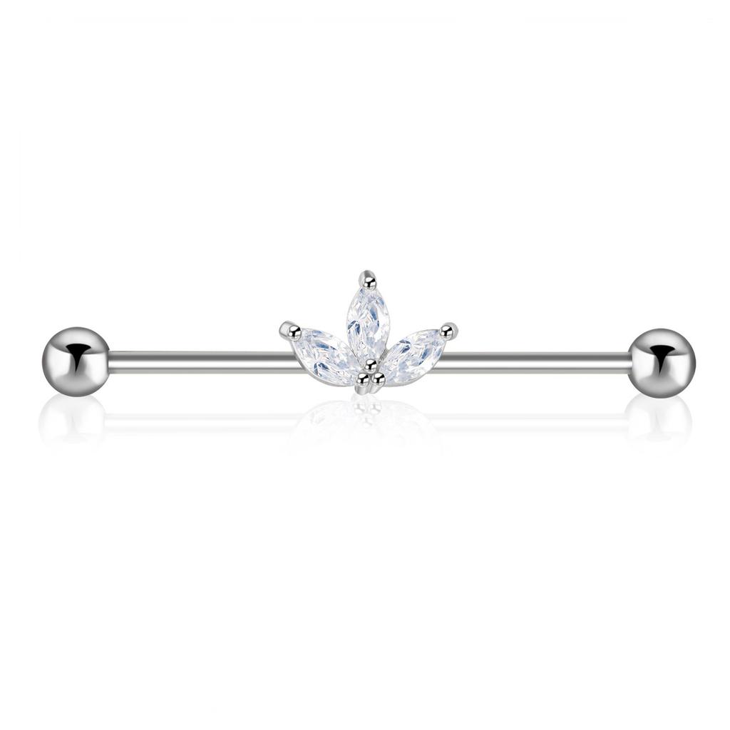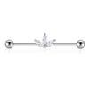 Stylish Industrial Barbell Earrings Stainless Steel Industrial Earrings Featuring Zirconia Leaf Design for Parties