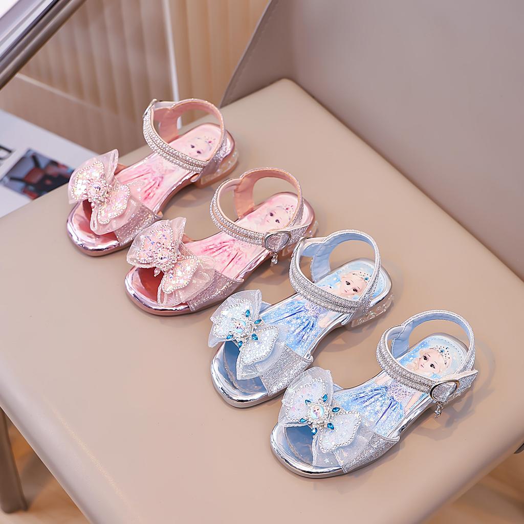 Kids Crystal Sandals for Girls 2025 Summer Non-slip Soft Sole Toddler Princess Shoes with Shiny Rhinestone Bow Elegant Dress-Up